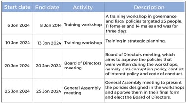 2. Internal policies, fiscal policies, and code of conduct were written.