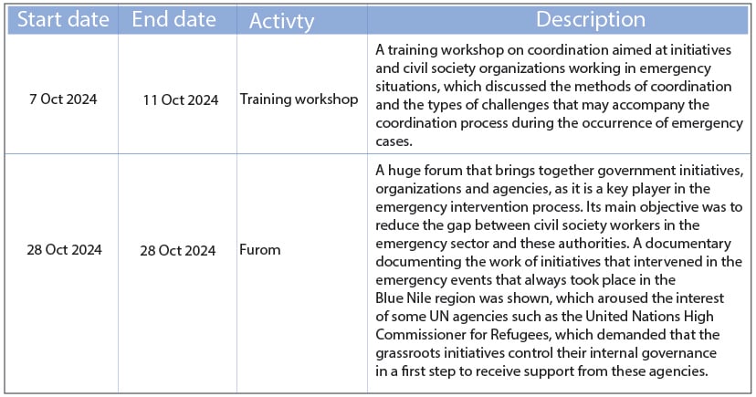 All the activities of All the activities of this project were carried out in the Ed-Damazin area during the month of October of 2024.