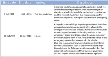 With the survey, it was noted that there are real problems in arranging interventions implemented through initiatives and civil society organizations in the emergency sector among them and the authorities on the other hand, so this project was written and implemented to raise the quality of these interventions and develop coordination mechanisms to be activated in future emergencies.